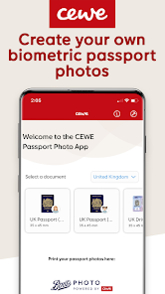 صورة جواز السفر CEWE هو تطبيق تصوير مجاني للتنزيل من قبل CEWE. تم تصميمه خصيصًا لـ التقاط صور جواز السفر البيومترية باستخدام كاميرات الأجهزة المحمولة، مع تلبية المتطلبات الرسمية لطلبات جواز السفر. كما يوفر قوالب لمختلف بطاقات الهوية الحكومية وغيرها من الوثائق الرسمية التي تتطلب أنواعًا محددة من أحجام الصور.